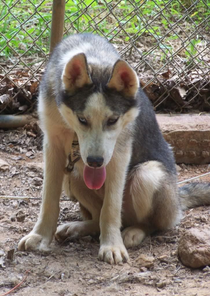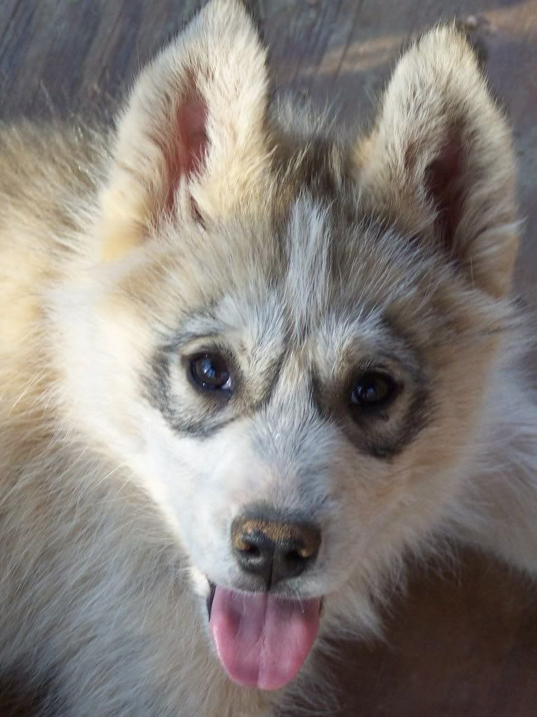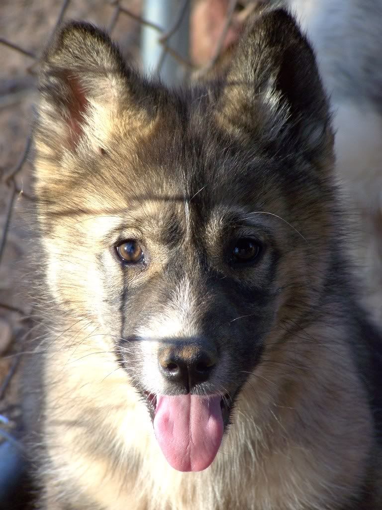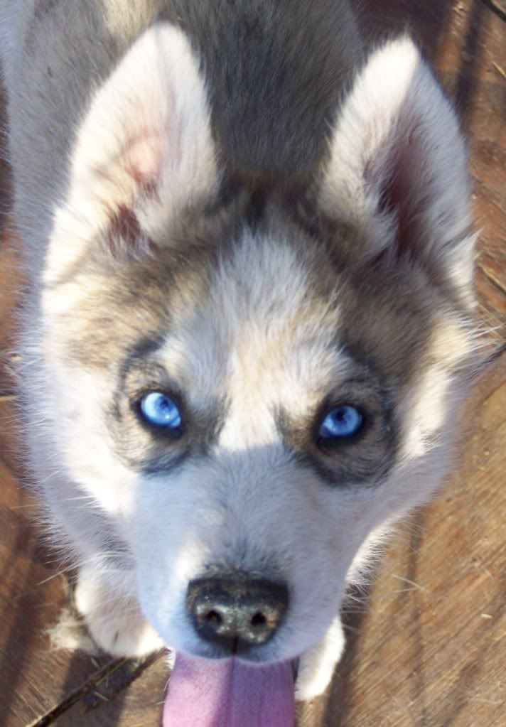 - Bullet (named after "Give Me Back My Bullets") male, wolf gray and white, the only blue eyed pup in the litter :) VERY mouthy, loves to speak and hoard tennis balls.