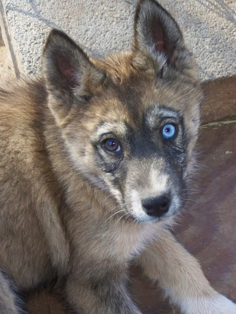 - Kajun (named after "Swamp Music") Female, Agouti and white with brown/blue bi-eyes. My pick of the litter, she will be staying here :) Probably one of the smartest puppies, loves to talk and chew on pants legs.