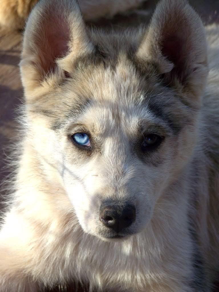 - Hatter (named after "Mad Hatter") male, light gray and white with amber/blue bi-eyes. Looks like his uncle Hark, and is VERY laid back. One of the taller puppies.