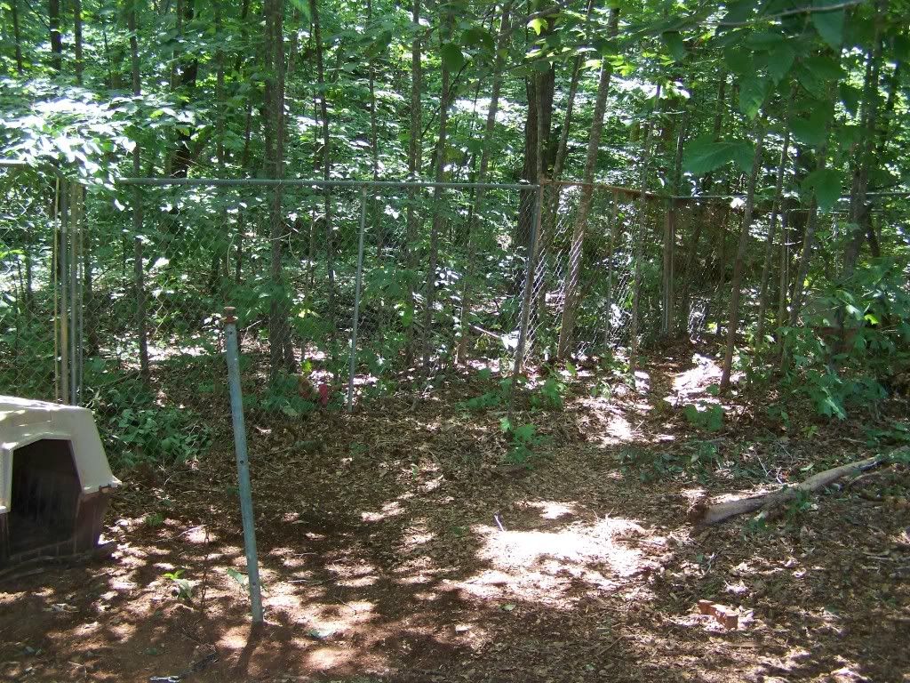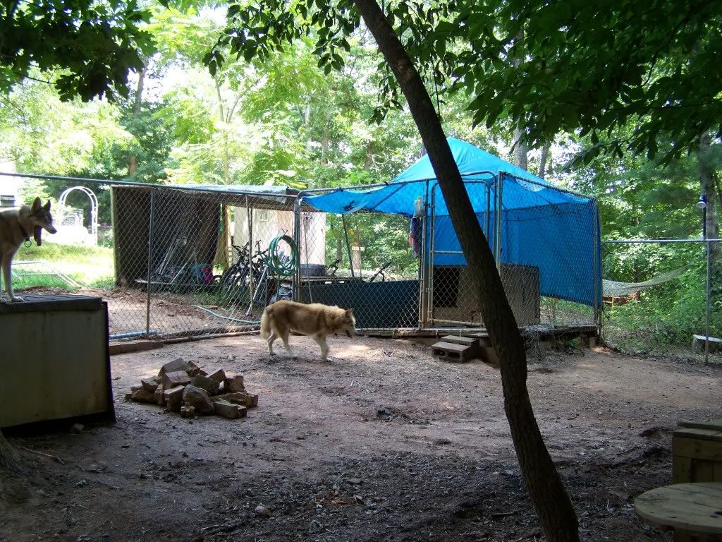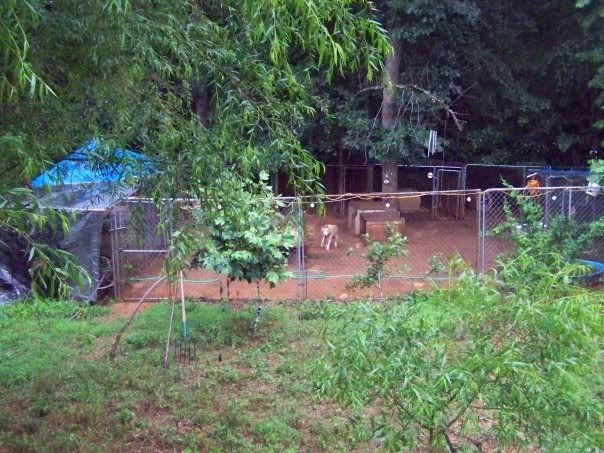 Here is what the kennel setup looked like before, in early summer. This was also when we had terrible flooding problems.