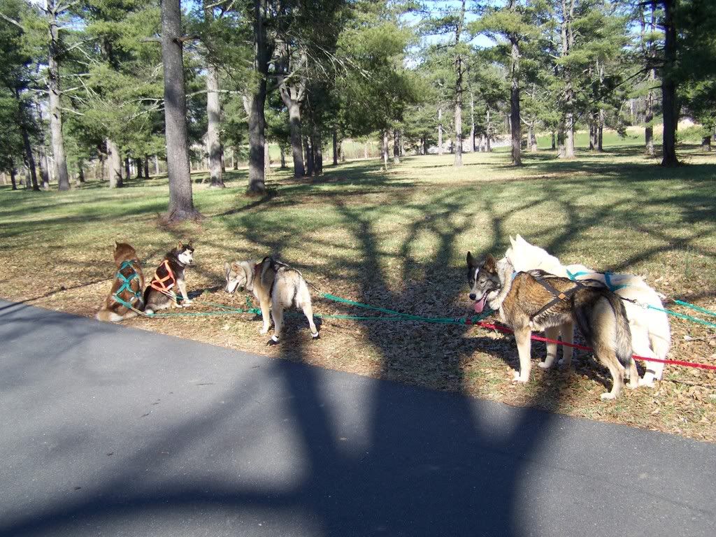 Just another good run. Wish we could be hitting that 10 mile mark, but I had too much to repair and fix so we had a very late season. Its already nearing the end, so I think I will just stick with 5-8 milers for the rest of the season. Hopefully next year I can break my 15 mile record and head straight for mid-distance dryland. A few of us on the SouthEastern Mushers Association Yahoo! board are talking about ideas of a 20 mile dryland race down here. Of course It had my full support :)